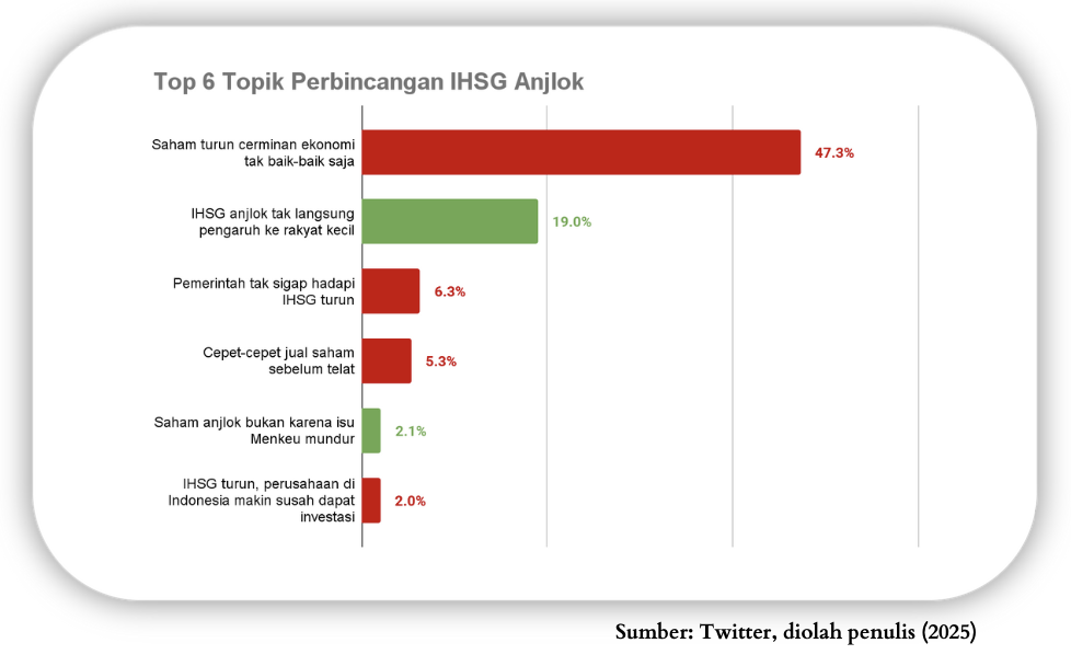 Pada tanggal 18 dan 19 Maret 2025, IHSG tercatat mengalami penurunan masing-masing sebesar 3,84% dan 6,12%. Penurunan ini menandakan meningkatnya volatilitas pasar yang dapat mengguncang stabilitas keuangan secara luas.